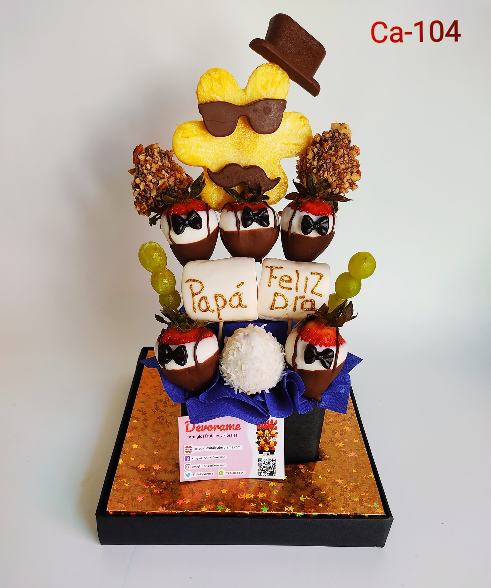 Su cerveza favorita, corazones de Sandía, flores de piña miel, palitos de jícama, palitos de tamarindo, tajín, cacahuates y fresas con chocolate.